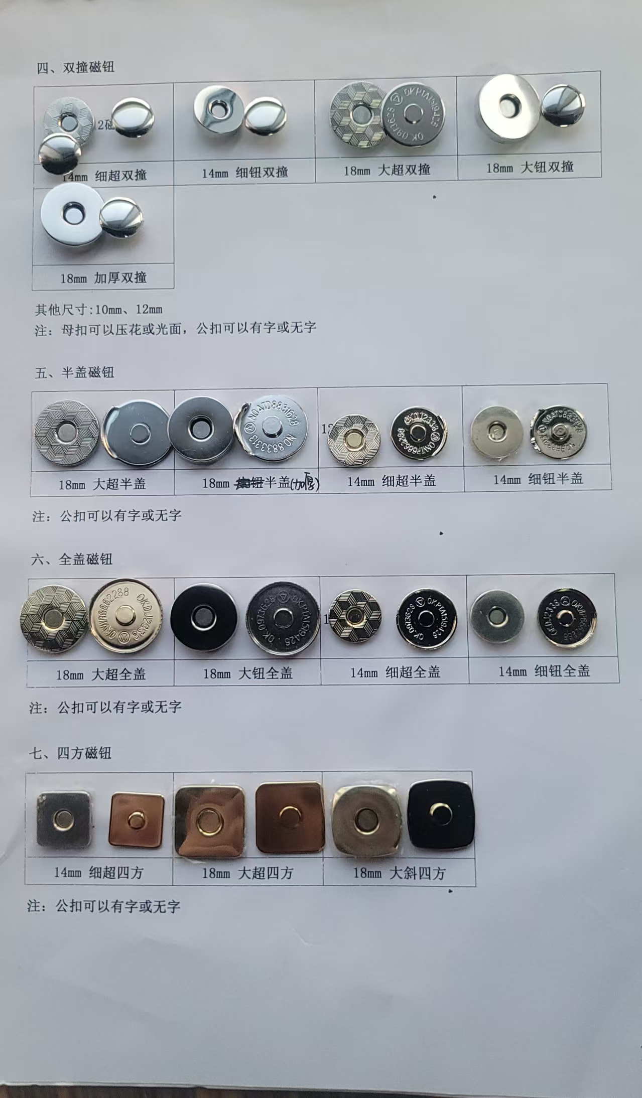 bulk metal magnetic buttons for bag factories 12mm/15mm/18mm assorted sizes